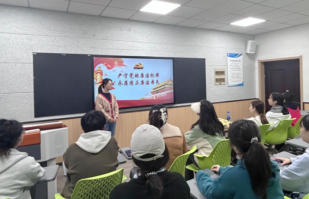 为进一步加强党风廉政建设,增强学生党员的廉洁自律意识,外国语学院学生党支部于10月22日在B307召开廉政教育主题活动,党支部书记吴丹为学生党员们讲授了一堂深刻的廉政党课。