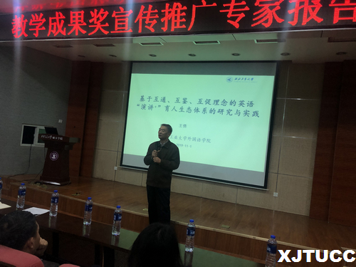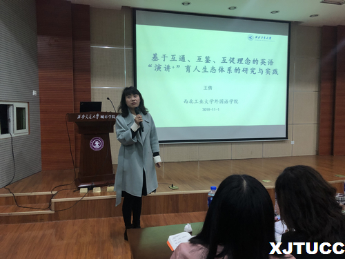 11月1日下午,西安交通大学城市学院外语系在教学楼F100举办陕西省教学成果奖宣传推广专家报告会。这次报告会邀请陕西省教学成果一等奖获得者、西北工业大学外国语学院王倩副教授围绕项目成果做了题为“基于互通、互鉴、互促理念的英语‘演讲+’育人生态体系的研究与实践”的报告。教学服务中心主任陈晓南、科技服务中心主任王小青及外语系全体教师和部分学生参加了报告会。陈晓南主持了此次报告会。
