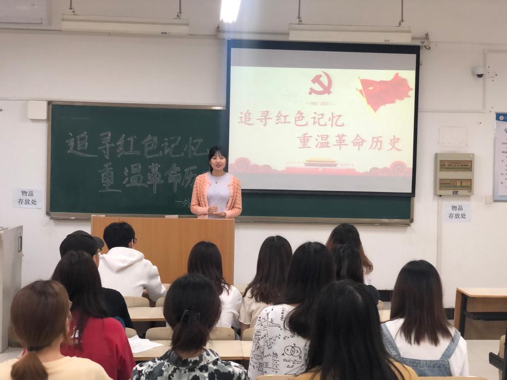 为庆祝建党一百周年,进一步加强“四史”学习教育,激发学生党员知史爱党、知史爱国,弘扬和传承红色基因,外语系学生党支部于6月16日晚在B312开展“追寻红色记忆,重温革命历史”——分享党的故事主题党日活动。本次活动由支部书记关天骄主持,外语系学生党支部全体党员参加。