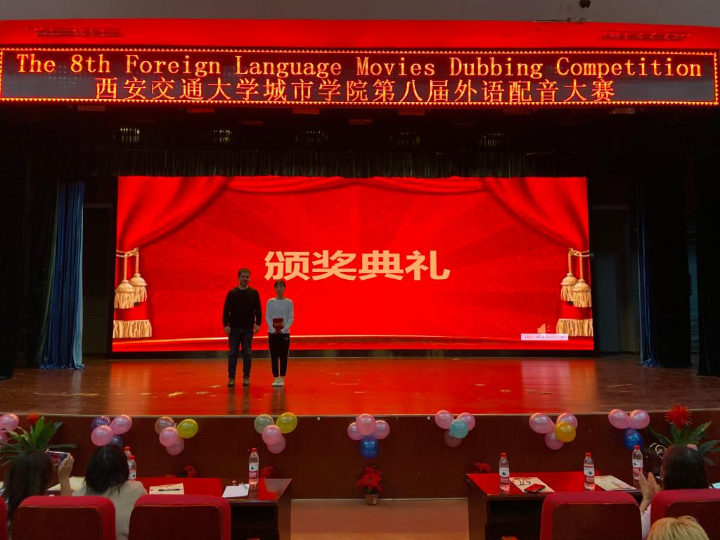 5月25日晚,由外语系主办的“西安交通大学城市学院第八届外语配音大赛”总决赛在教二楼报告厅举行。外语系副主任巫奕君副教授、外教Alessio、护理系学生工作负责人叶超、团工委书记张妙寒,辅导员王娇丹、陈欣,传播系学生工作负责人杨耀聪老师,管理系团工委书记黎杨以及外语系其他任课教师出席了本次比赛。外语系老师许秀云、苏晓华、艾庆华、樊华、薛瑞担任本次大赛评委,2020级学生到场观赛。
