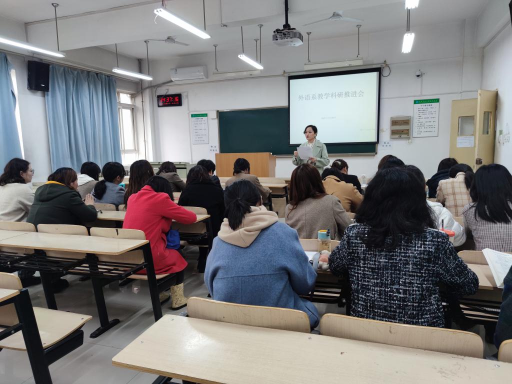 为响应学院号召,更好地推进教学和科研建设,外语系于3月26日下午召开了本学期首次教学科研推进会,外语系副主任兼英语专业教研室主任徐素云、外语系副主任兼大学英语教研室主任巫奕君共同主持会议,外语系全体教师参加了本次会议。