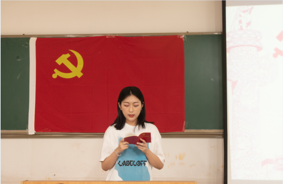 活动伊始,张天老师对本次支部活动进行了安排部署。随后,在领誓人的带领下大家面向党旗庄严宣誓,表达了对党的无限忠诚与热爱。宣誓结束后,党员代表对党章的总纲和党员的责任义务进行了宣讲解读。