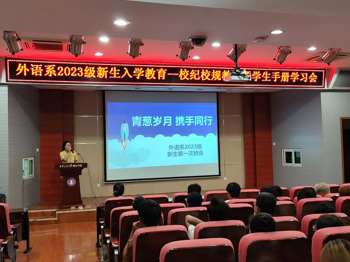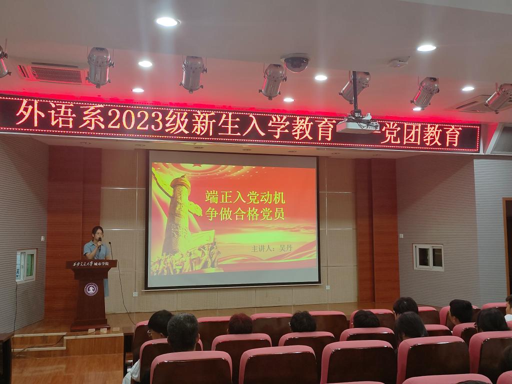 为教育引导外语系2023级新生顺利完成角色转变,科学规划大学生活,助力学生成长成才,西安交通大学城市学院外语系按照学院关于新生入学教育的部署,结合系专业特色,于9月6日至9月13日开展了学业职业规划教育、入党启蒙教育、团学教育、校纪校规教育、新生适应性教育、学生行为规范养成、参观语音实验室、新生第一次班会等系列入学教育活动。