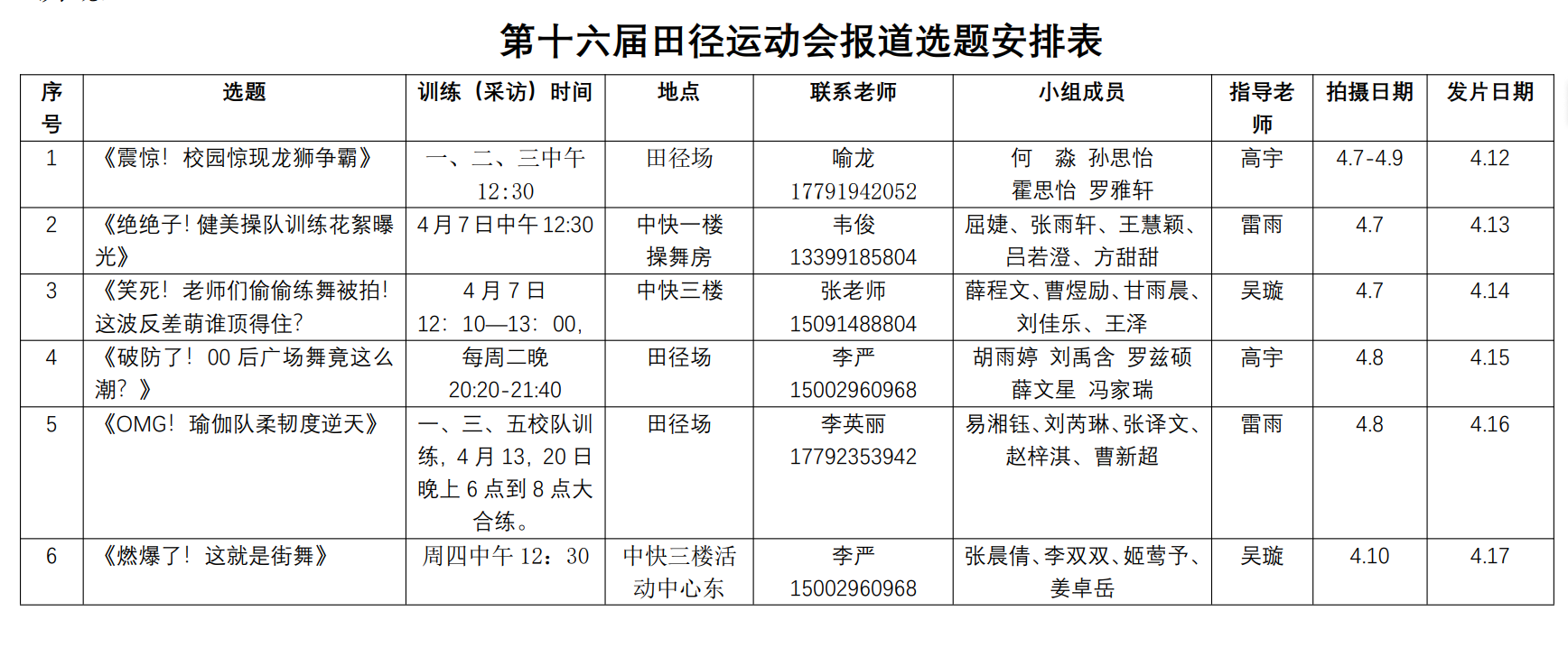 报道作品聚焦校运会亮点,既有《直击91人“龙狮天团”备战现场》对非遗文化的深度呈现,也有《解密排舞团体操的整齐密码》对团队协作的细节剖析,《燃爆了,这就是街舞》《红袖飘飘,探班教师水袖舞排练幕后》通过动态镜头展现师生风采,《运动员备战日记大公开》则以海采形式记录学生真实心声。